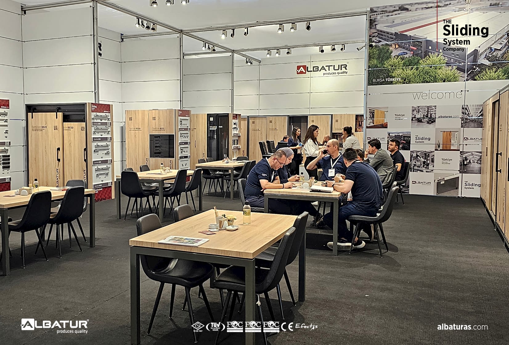 Albatur Endüstri'nin 210 m²'lik standı, ziyaretçilerin yoğun ilgisini çekti. Standımızda, en son teknoloji ile geliştirilmiş sürgü sistemleri ve mobilya aksesuarları başta olmak üzere birçok yeni ürünümüz sergilendi. Ürünlerimizin üstün kalitesi ve işlevselliği, fuar boyunca ziyaretçilerden tam not aldı.